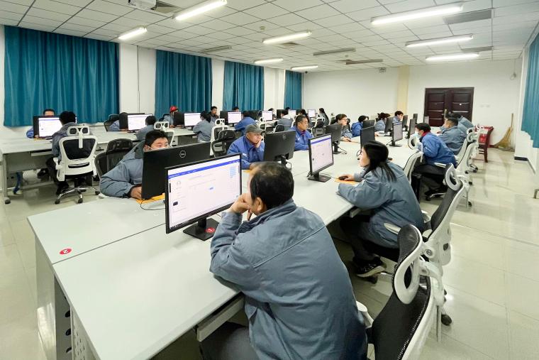 培训班采用线上线下融合、堂测月考的多元授课培训模式。线上借助培训学校专业化工学习平台,为员工无限制提供精品培训资源,涵盖视频、课件、测验及考试等内容。线下课堂精挑学校专业老师到现场集中授课,同时每天腾出30分钟时间由老师与员工就课程内容、线上操作等交流互动。为确保培训不走过场、不流形式,陕化公司严格管理,紧盯员工出勤,严抓课程纪律,保障学习质量。要求员工在培训中及时做好课程笔记作业,课后及时批阅笔记记录情况。同时定期安排闭卷考试3次,有效检验课程效果。在理论考核中,平均成绩较第一次培训提高了8分,员工对相关知识的掌握程度大幅提升。在系列培训班结束后的交流中,超七成员工反馈自身对化工理论基础知识的理解更为系统、深入,对实际操作具有很强的指导意义。