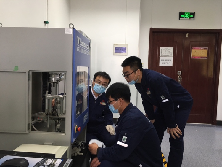 榆能化产品研发中心牵头成立联合研发工作组,有序推进聚丙烯熔喷料研发工作。他们加班加点,放弃节假日休息,开展配方研究、测试分析等,对比多组配方实验,筛选配方,优化产品性能,克服多项困难,一次性完成聚丙烯熔喷专用料研发试产工作。该熔喷专用料熔融指数达2500g/10min以上,核心技术指标满足下游客户需求。