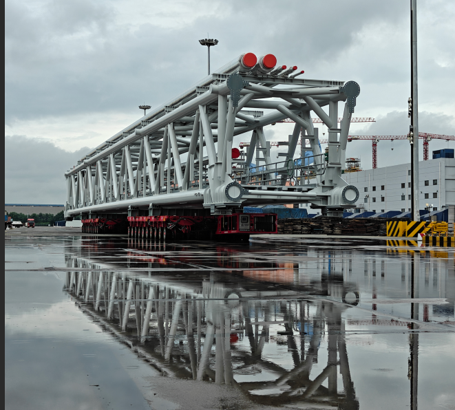 据介绍,此次发运的管廊模块单台长约70米、重近400吨,运输难度大。石化起运公司充分发挥其在全球重大能源工程项目中的丰富经验和技术优势,通过精准路线规划、定制化运输工装设计,有效克服现场复杂工况,确保了模块安全、平稳、精准就位。
