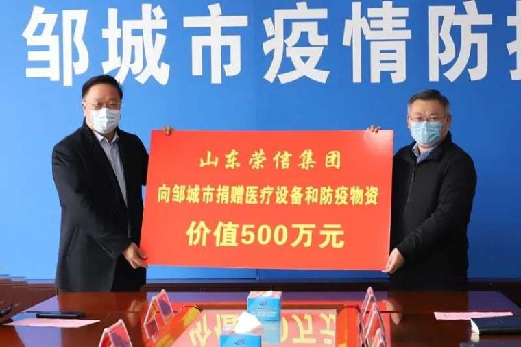 恒信集团董事长、荣信集团总经理司相芳代表恒信集团对一线防疫工作者致以崇高敬意,他表示,作为地方龙头企业,有责任有义务履行社会责任,为抗疫助一臂之力,共同战胜疫情,并向邹城市领导和全市人民致以美好祝福。