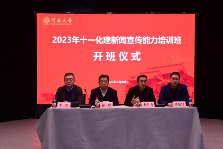 十一化建副总经理郭廓,河南大学新闻与传播学院院长王鹏飞,河南大学新闻与传播学院党委副书记郝魁锋,公司党群工作部部长李路出席了开班仪式。