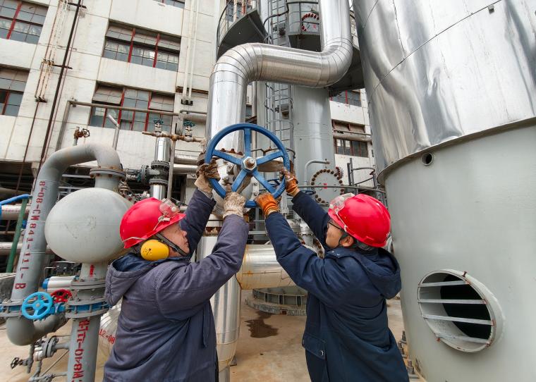 图为大雪来临前中原大化化肥装置操作人员根据寒流天气变化在调整系统工况。
