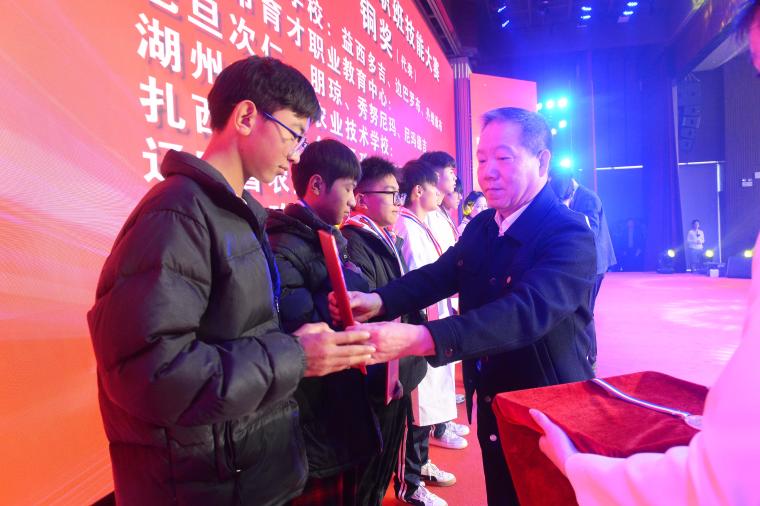 本届大赛1月26日至31日举行,紧密对接西藏产业发展与民生服务需求,大赛设置7个赛道、10个专业赛项,33所学校的87支队伍竞技,产生金奖10项、银奖22项、铜奖33项。会上,向优秀组织单位、选手、指导教师颁奖。学生表演了精彩文艺节目,不时博得观众的热烈掌声。