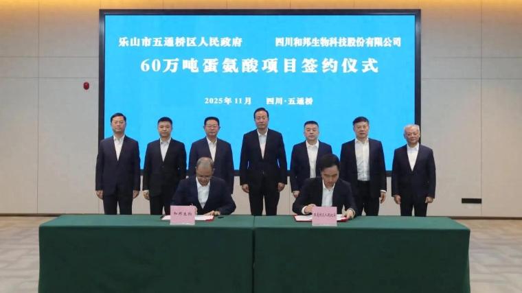 11月20日,乐山市五通桥区人民政府与四川和邦生物科技股份有限公司在乐山福朋喜来登酒店成功举行60万吨/年蛋氨酸项目签约仪式。乐山市委书记赵波、市长赵迎春、市政协主席黄平林等市、区领导,与和邦集团董事...