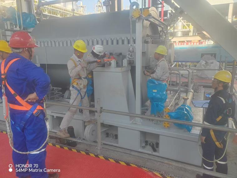 该公司员工针对核心机组极高的安装难度,项目团队在汽轮机及压缩机安装找正中,历时14天持续攻坚。实现28个关键点位水平度实测均值达0.16mm/m,较三菱厂家严苛标准(0.3mm/m)精度提升47%。机组的高精度找正,不仅为机组的平稳运行提供保障,同时为该公司在大型机组安装领域“精度控制+高效施工”积累了经验。