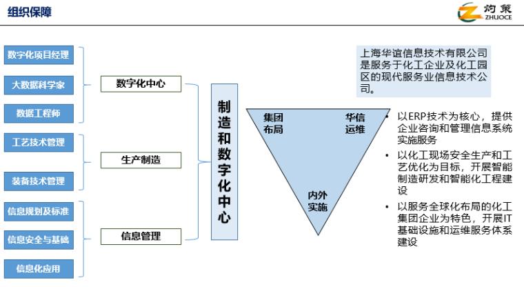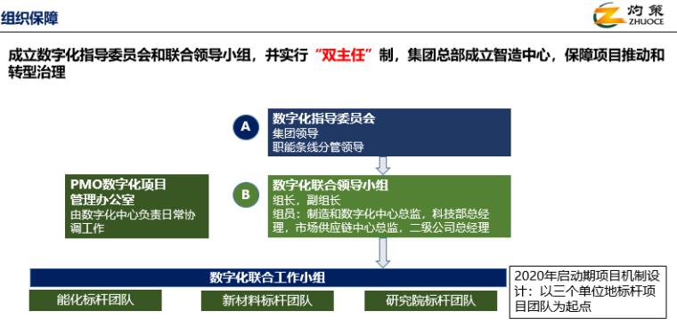 华谊集团成立数字化指导委员会和联合领导小组,并实行“双主任”制,集团总部成立智造中心,保障项目推动和转型治理。