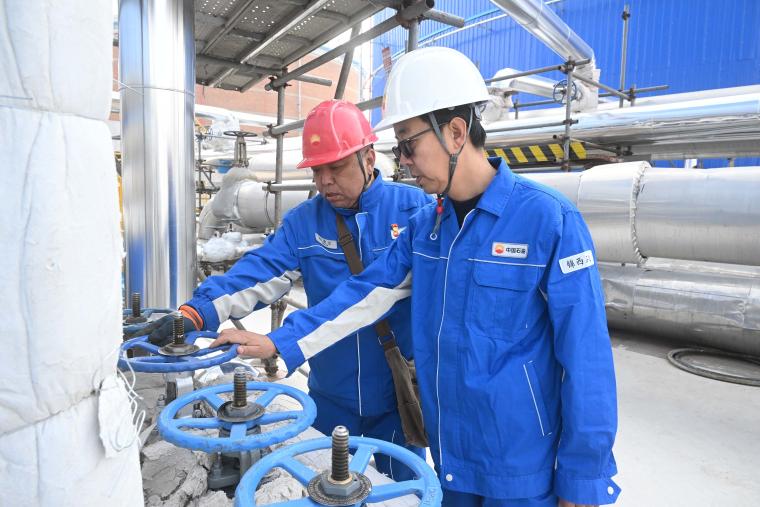 生产运行处技术人员同岗位员工对改造后的管线进行巡检。程立新摄影