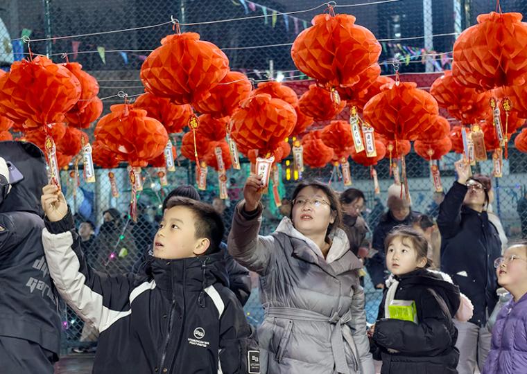游园活动同样受到大家的喜爱,猜灯谜、“马蹄踏踏 喜乐元宵”“同心接福 福满新春”“巧手夹汤圆”等七个趣味游戏活动现场前都排起了长队。职工、家属和孩子们积极参与,或低头沉思猜灯谜,或蒙眼踏步赢奖品,或默契配合夹“汤圆”,欢声笑语回荡在活动中心的每个角落。大家在游戏中增进了亲子感情,也收获了满满的快乐与惊喜。