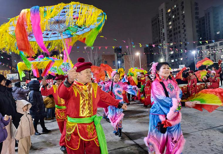 活动现场,由退休职工和家属表演的迎春锣鼓、喜庆秧歌、划旱船、群仙游龙城……一个个传统民俗项目轮番上演,不断把活动氛围推向高潮,让职工们在放松之余,尽享中国传统民俗文化的独特魅力。